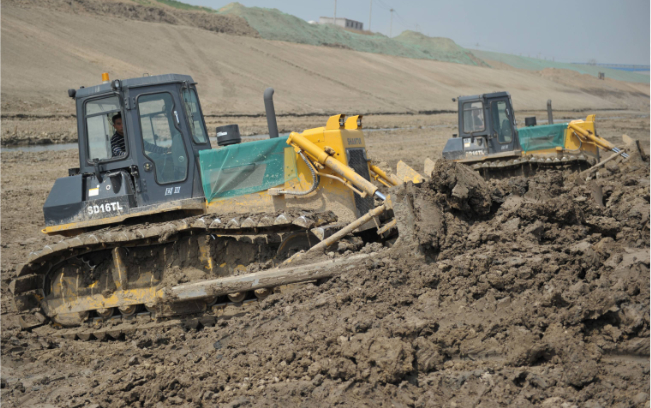 十幾輛山推SD16TL推土機在運河河道內作業,“馬力大、省油、駕駛室還舒服”,推土機駕駛員毫不掩飾的夸贊這些推土機。SD16TL推土機超寬的三角型履帶避免了機器在軟土、濕地、沼澤地帶等松軟物料作業場所作業時的下陷,在河道拓寬、清淤等水利工程施工中具備無可比擬的作業能力。